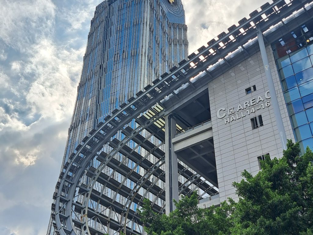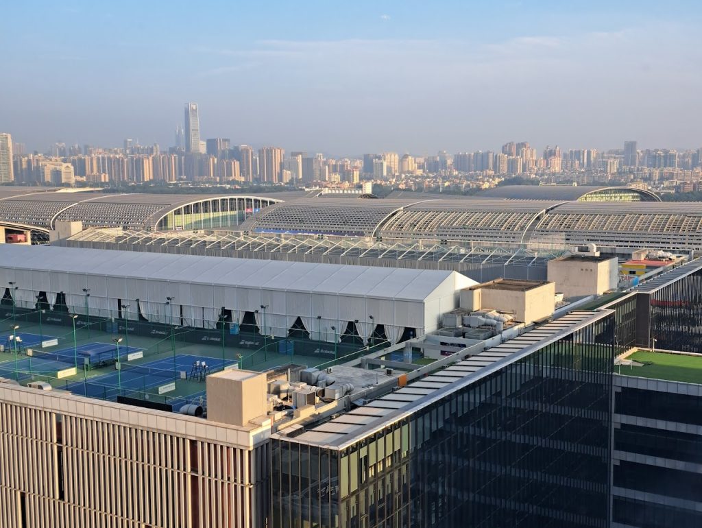 Valitsin budjettiystävällisemmän palveluasunnon osoitteessa Pazhou Poly World Center, noin 10 minuutin kävelymatkan päässä messukeskuksesta. Vastaanotto- ja aulatilat olivat melko perusasioita, mutta itse huone oli täysin kunnossa. Ainoa pieni haaste oli saapuminen. Laskeuduin Shanghaista myöhään illalla, noin klo 23, ja kompleksi koostuu useista massiivisista rakennuksista. Taksikuski ei tuntenut paikkaa ja melkein jätti minut pimeässä väärän rakennuksen luo. Vastaanotosta kysyttyämme löysimme oikean sisäänkäynnin – se ei ollut yhtä suoraviivaista kuin suurissa kansainvälisissä hotelleissa. Tämä on kuitenkin tyypillistä budjettimatkailua – kaikki tarvittava lähellä messuja.