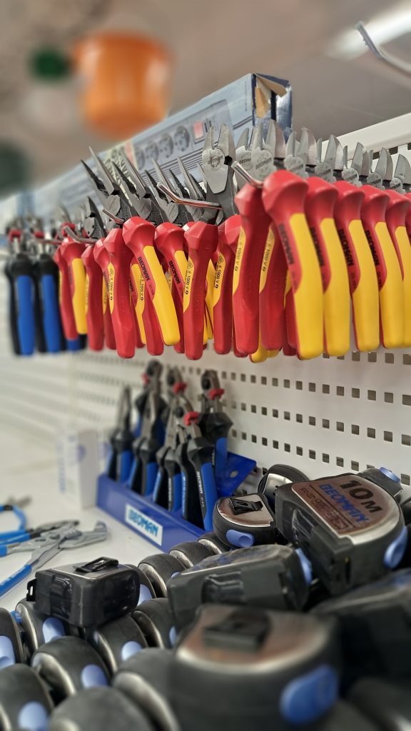 Tämä rakennusteollisuuden kivijalkamyymälä on erinomainen esimerkki siitä, miten ammattitaitoinen ja asiantunteva henkilökunta voi aidosti tukea rakentajia ja urakoitsijoita. Jos jotain tuotetta ei ole varastossa, se hankitaan. Yksi erityisen miellyttävä yllätys oli käytettyjen ja kunnostettujen sähköjakokeskusten valikoima, toisin sanoen kiertotaloutta parhaimmillaan. Erkin mukaan nämä taulut liikkuvat nopeasti. Yhtenä hetkenä niitä voi olla useita saatavilla, ja seuraavana ne ovat kaikki menossa yhdelle työmaalle.